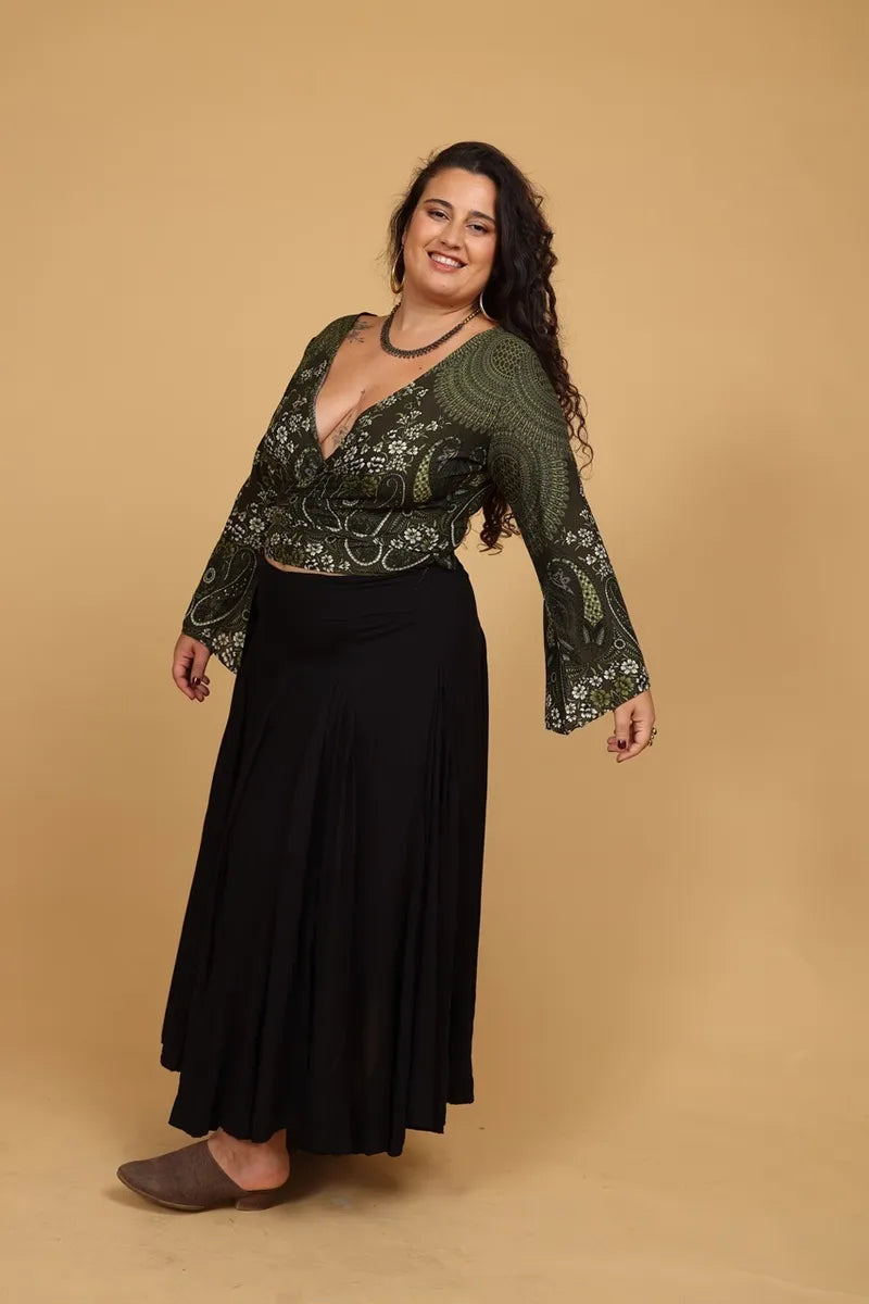 * שרוולים ארוכים מתרחבים בסגנון עטלף.