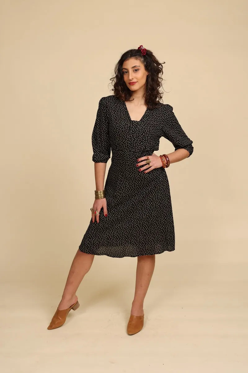 שמלת מידי מתוקה בגזרה קלאסית ורומנטית.
