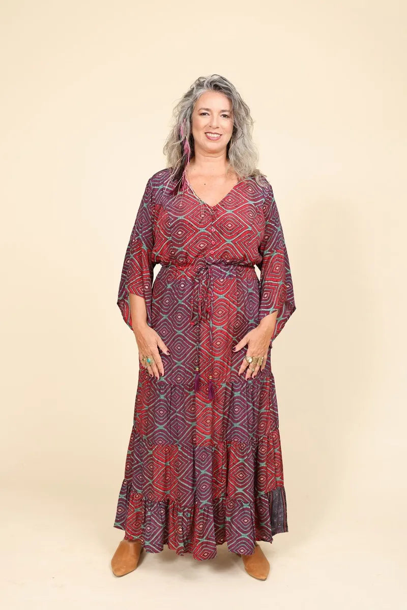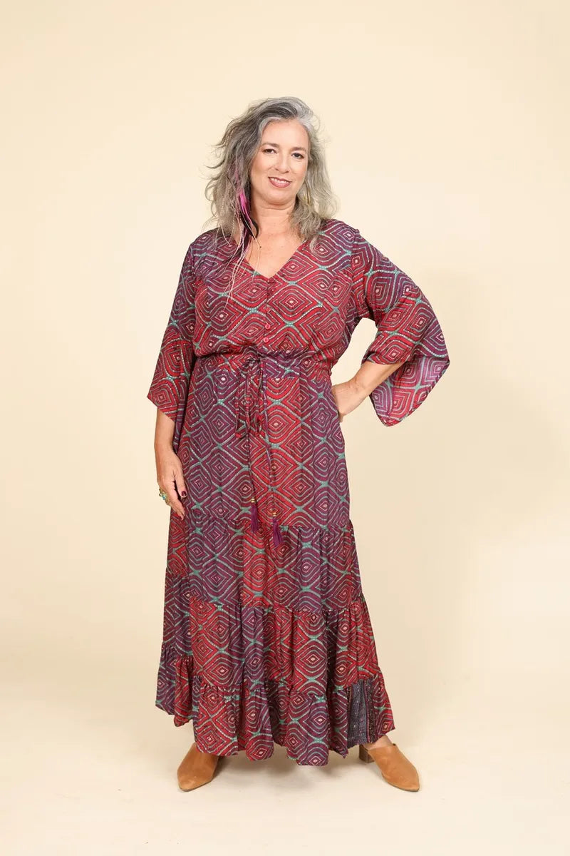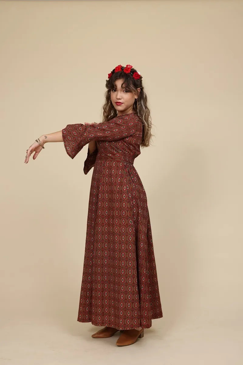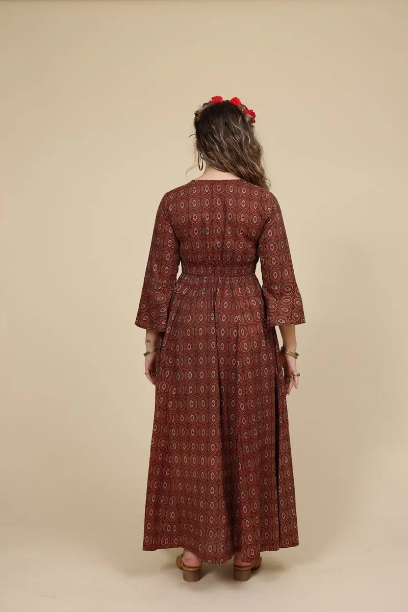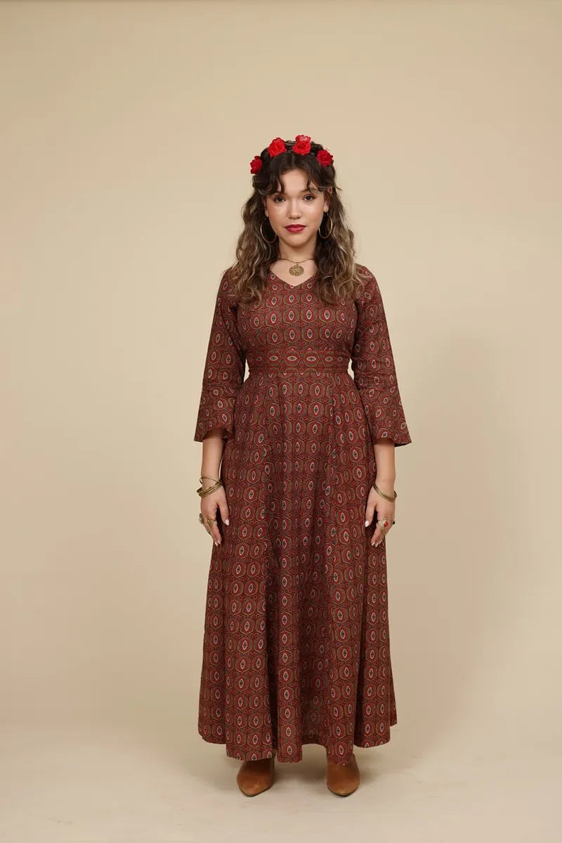 שמלה באורך מקסי עם שרוולים מתרחבים המעניקה מראה קסום ומיוחד.